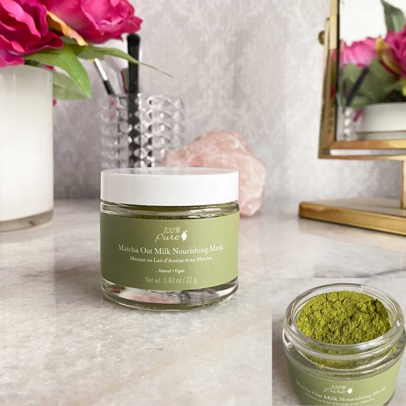 I love the 100% Pure Matcha Oat Milk Nourishing Mask, which has oats and calendula to soothe (amazing for my sensitive skin), coconut milk for softening, green tea to restore and protect against environmental damage. Ceramides improve suppleness (they’re key for your skin’s barrier function) and finally hyaluronic acid really help hydrate your skin!